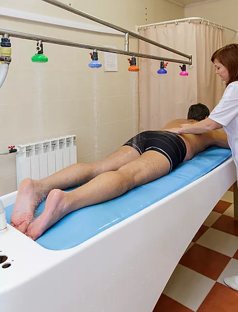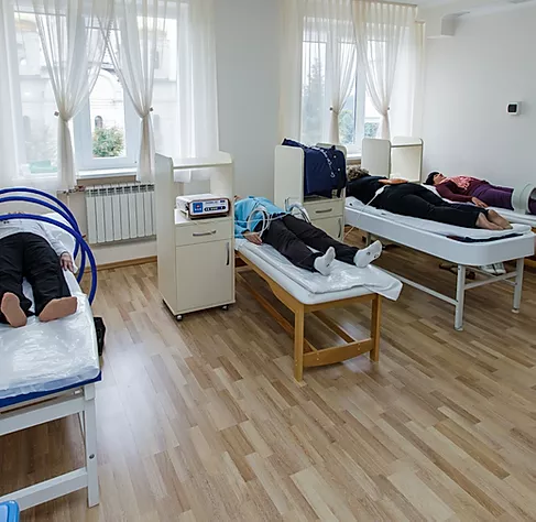 В санатории доступна комплексная диагностика, включая сложные случаи. Опытные лечащие врачи и врачи-консультанты, прошедшие специальную курортологическую подготовку. Через дорогу от санатория – научно-исследовательский институт курортологии. Современная диагностическая аппаратура (аппарат УЗИ для всех видов исследований, ЭКГ, собственная лаборатория). Персональный лечащий врач. Более 70 видов процедур. Индивидуальные программы. Плавательный бассейн. Отпуск процедур 6 дней в неделю, кроме воскресенья.