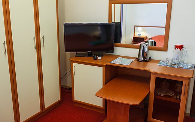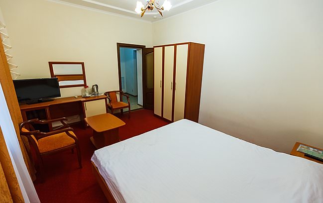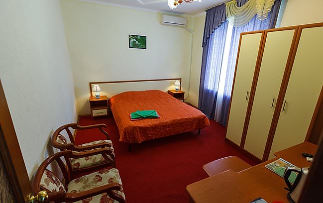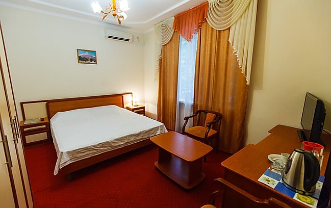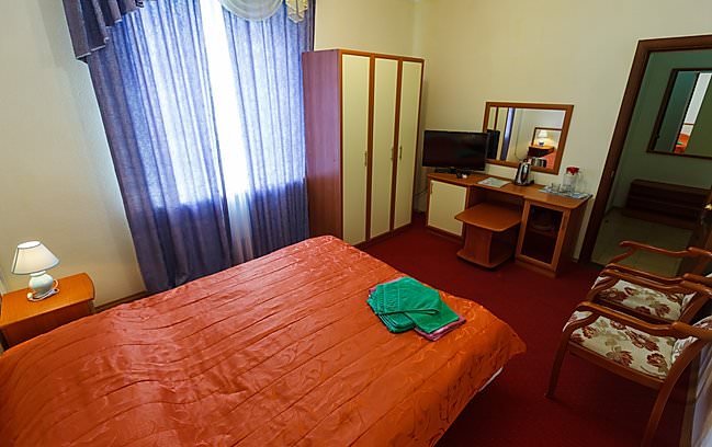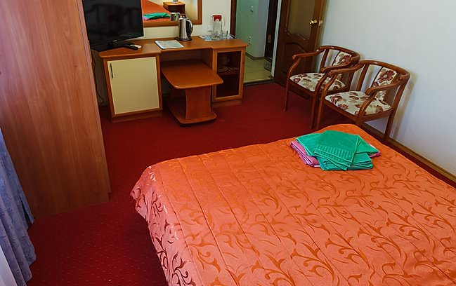 Первая категория. Одна комната. Душ, фен, ЖК телевизор, холодильник, кондиционер, 1 кровать, эл. чайник, сейф, набор посуды. Wi-Fi в номере.