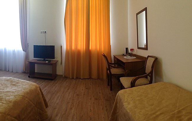 Первая категория. Одна комната. Душ, фен, ЖК телевизор, холодильник, кондиционер, 2 кровати, эл. чайник, сейф, набор посуды, Wi-Fi.